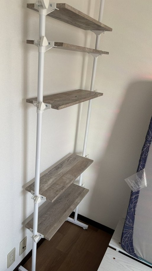 棚板は支柱の上から入れろ、というのを無視ししたら割れた。